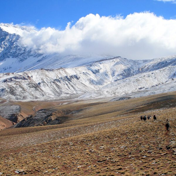 Serán los caballos quienes marquen el ritmo del ascenso. Vientos helados, vistas espectaculares, pendientes empinadas, nieve eterna, el sonido fuerte de la respiración y los latidos de los caballos y mulas: ¡momentos que nunca olvidará!