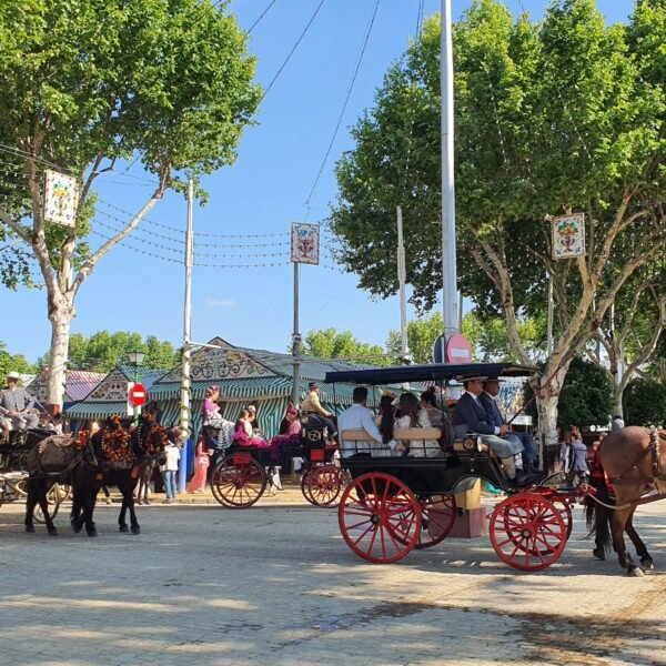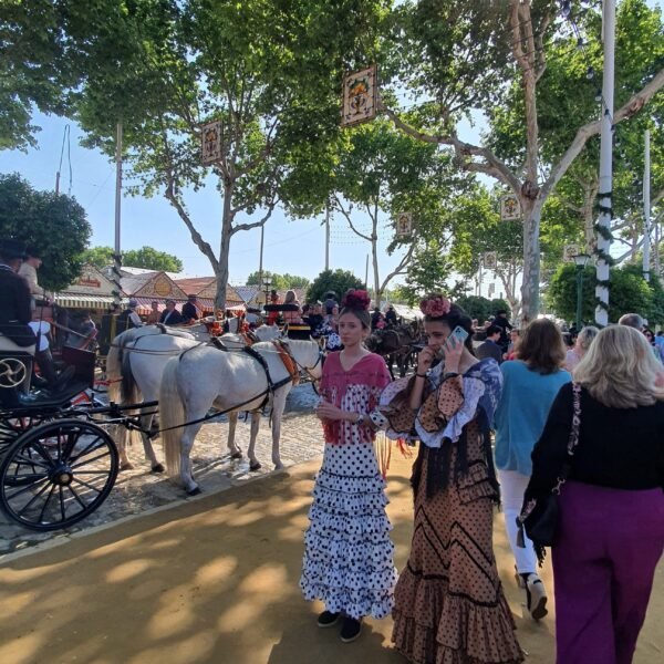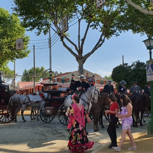 Le añadimos otro día más, en el que nos vamos a disfrutar de la grandísima y única, Feria de Abril ( feria de Sevilla), donde lo haremos a caballo.