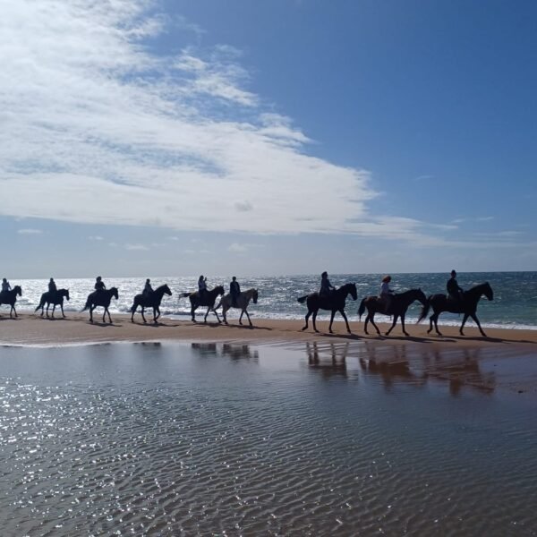 Este programa de turismo ecuestre ofrece una experiencia inolvidable por Andalucía, recorriendo algunos de sus paisajes más emblemáticos y cargados de tradición. La aventura comienza en Ardea Purpurea, en el corazón de Doñana, y nos lleva por rutas históricas y culturales como el Río Quema y la Raya Real, cruzando el Parque Nacional de Doñana hasta la Aldea del Rocío. Disfrutaremos de la gastronomía local y de un espectacular paseo por las playas vírgenes de Doñana al atardecer.