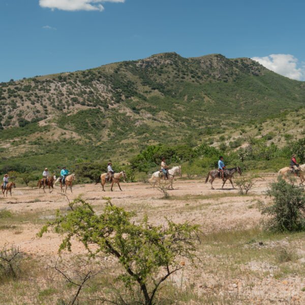 Los caballos están listos y nos esperan para comenzar nuestra aventura, del rancho Colomitos a la mina de Peñafiel, una jornada a caballo por típicas comunidades rurales, hasta llegar a las estribaciones de las montañas Montecillo, donde comenzamos a ascender desde 1.900 msnm hacia la antigua hacienda Cardones a 2.236 m.s.n.m. cruzando paisajes de naturaleza cambiante con elementos del semidesierto y la majestuosidad de la cordillera central. Tendremos la oportunidad de observar varias ruinas antiguas de minas y haciendas de cientos de años de antigüedad, como el Santo Niño, ubicado entre las montañas, desde la época de la colonia española. Cruzaremos el "Río Cardo" Mejor conocido como Río Verde, y podemos, si así lo deseamos, *nadar en su retrete natural de agua filtrada proveniente del agua de la "Montaña Sagrada". Una pequeña piscina natural en el medio del desierto.